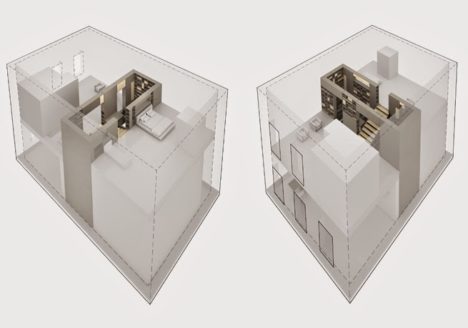 Il progetto propone una soluzione specifica e radicale che riorganizza lo spazio attraverso un “core” attrezzato e a doppia altezza che tematizza tutte le parti della casa.