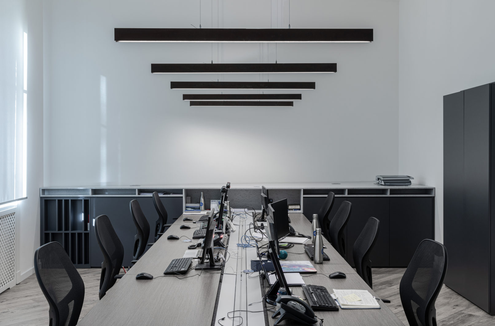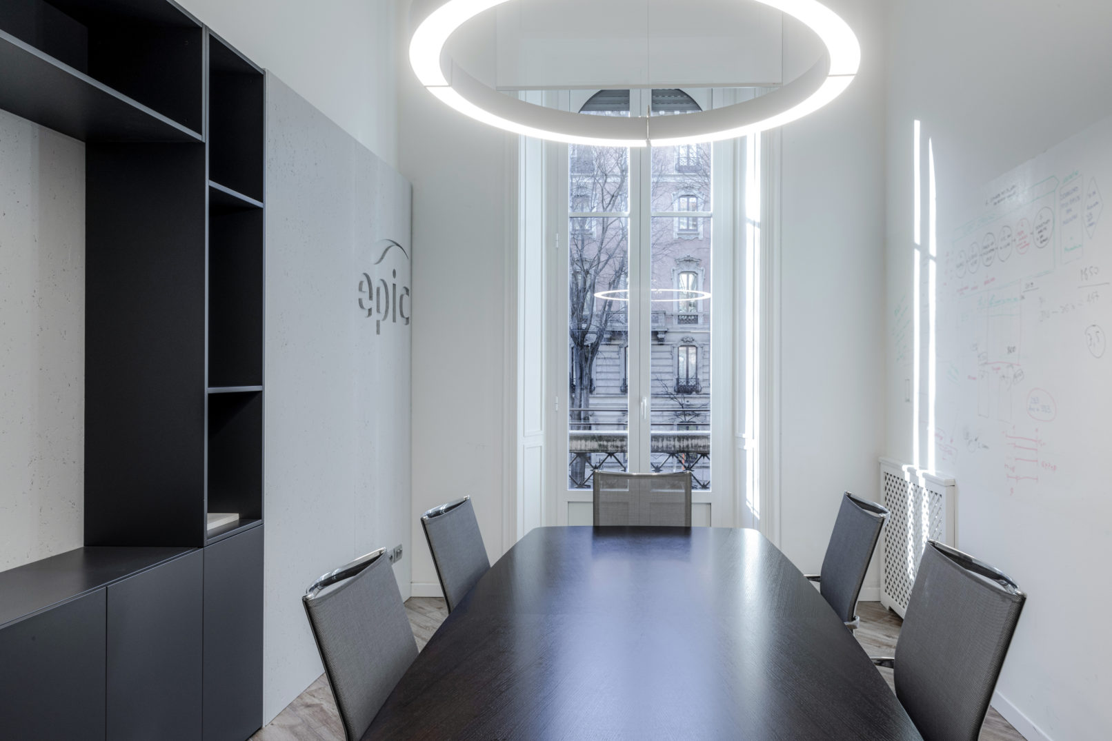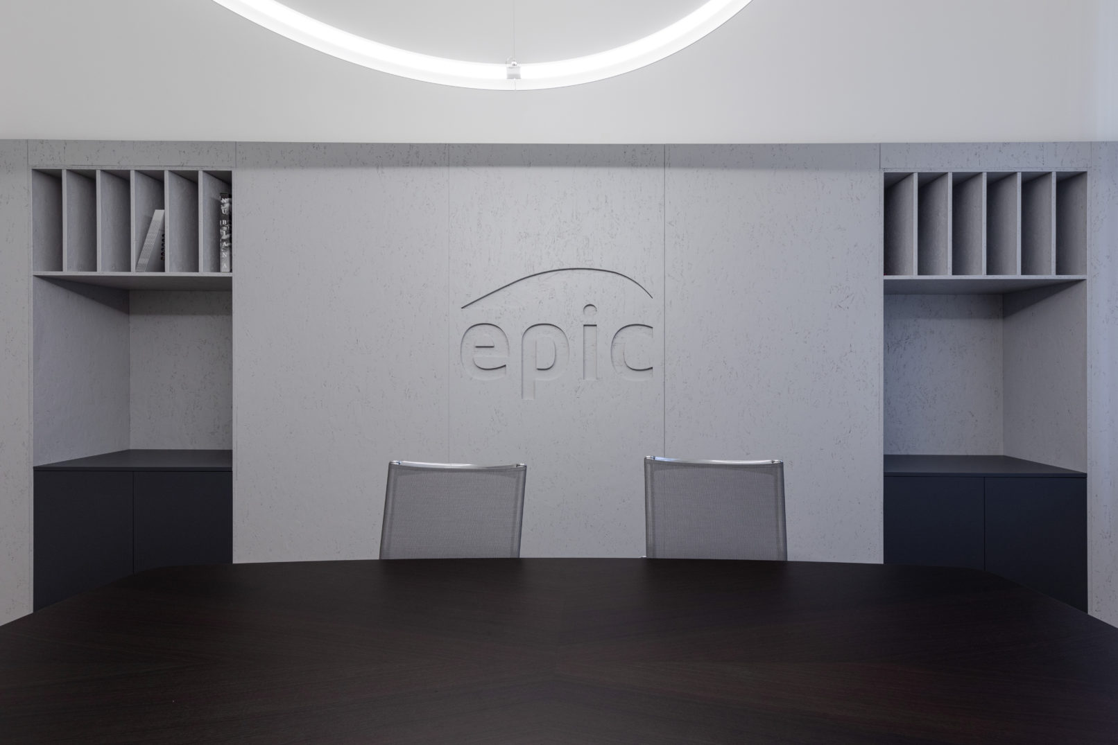 Lo spazio Epic in Foro Bonaparte a Milano è stato oggetto di un integrale intervento di interior design che ne ha caratterizzato gli ambienti ispirandosi al core business della committenza. Attiva nel sostegno alle piccole e medie imprese, Epic ha voluto trasferire questo approccio nell’arredo privilegiando un’impronta di natura industriale, capace di rimandare al carattere distintivo delle eccellenze italiane. Il concept di progetto ha previsto la definizione dei vari ambienti necessari attraverso un sistema di boiserie che nobilita gli spazi e integra l’arredo con elementi ad incasso. La boiserie è realizzata con pannelli di OSB, materiale tipicamente industriale, leggermente levigato e verniciato, che conferisce un effetto vibrante e materico alle superfici. Buone parte dei tavoli sono stati realizzati con lamiere e tubolari di acciaio mentre le lavagne sono state integrate alle pareti. Attraverso il progetto di illuminazione si è voluto rafforzare e diversificare le caratteristiche spaziali degli ambienti.