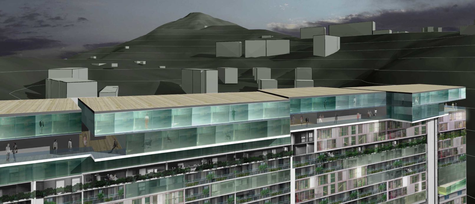 La forma urbana di Genova presenta inoltre una chiara vocazione alla “aggregazione successiva” di parti molto differenti tra loro. Ne risulta una pezzatura ramificata dell’edificato, che si sgretola verso le valli: una vera e propria matrice urbana generata dalla morfologia del luogo, potenziale di trame e di letture trasversali. Il progetto propone una rilettura critica di tutta l’area di studio e interviene attraverso la stesura di un tessuto suddiviso in grandi comparti/zolle e l’innesto di una “spina” di città pubblica in corrispondenza della principale arteria viaria che serve l’area di progetto. Quest’ultima diviene armatura ed elemento polarizzante dei tre macro comparti nei quali abbiamo suddiviso l’area, e proprio intorno alla spina si addensa gran parte del programma.