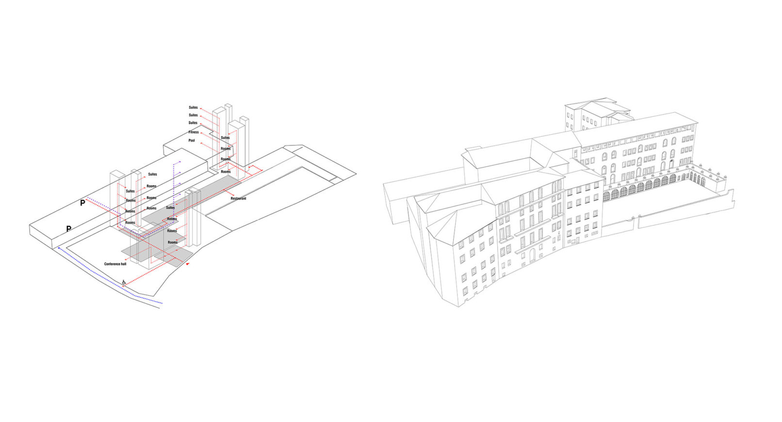 Lo studio di fattibilità proposto è finalizzato alla salvaguardia della preesistenza storica, attraverso un complesso aggiornamento del suo programma e mediante l’inserimento di funzioni culturali, ricettive e sportive, queste ultime principalmente reintegrate nel disegno del grande giardino retrostante
