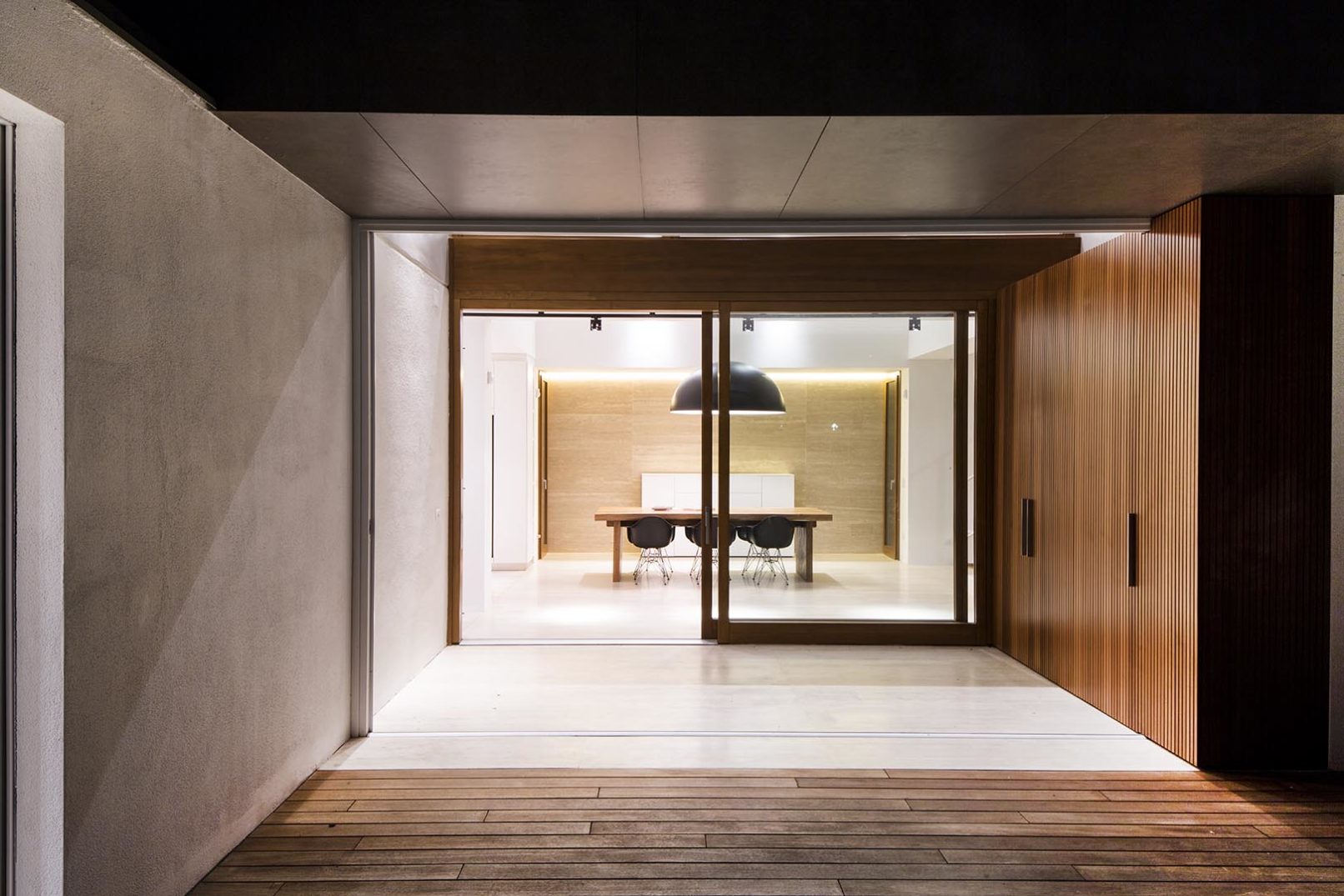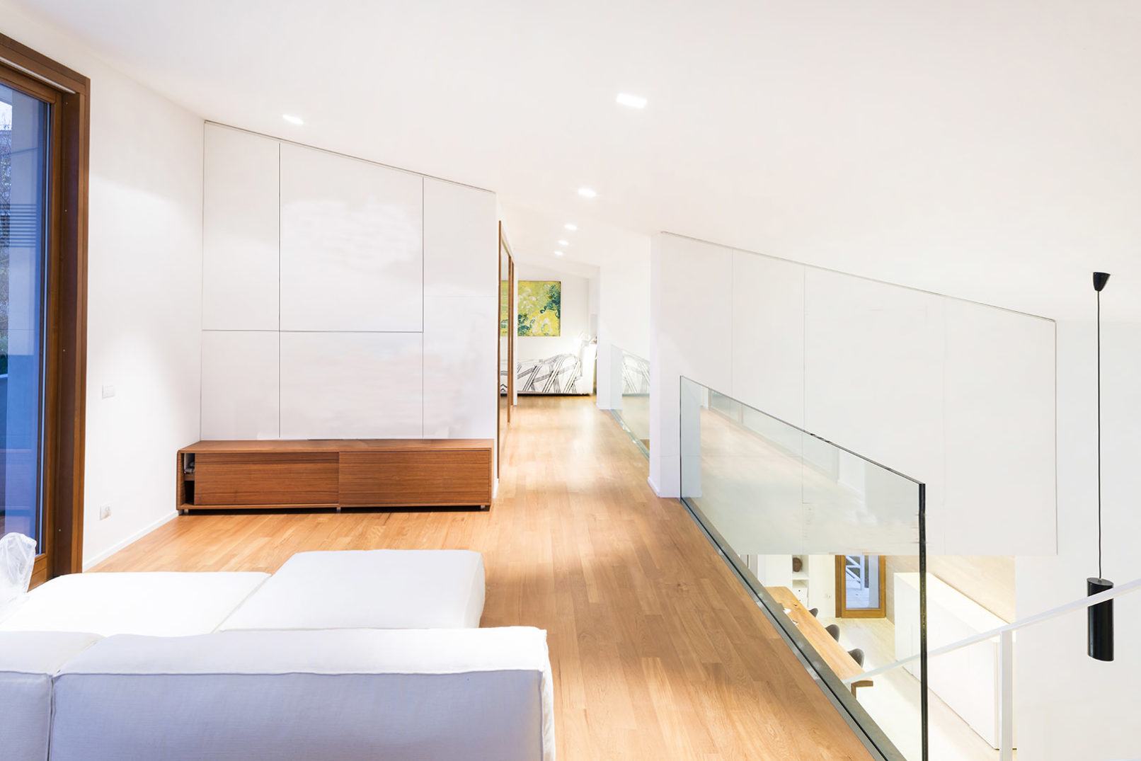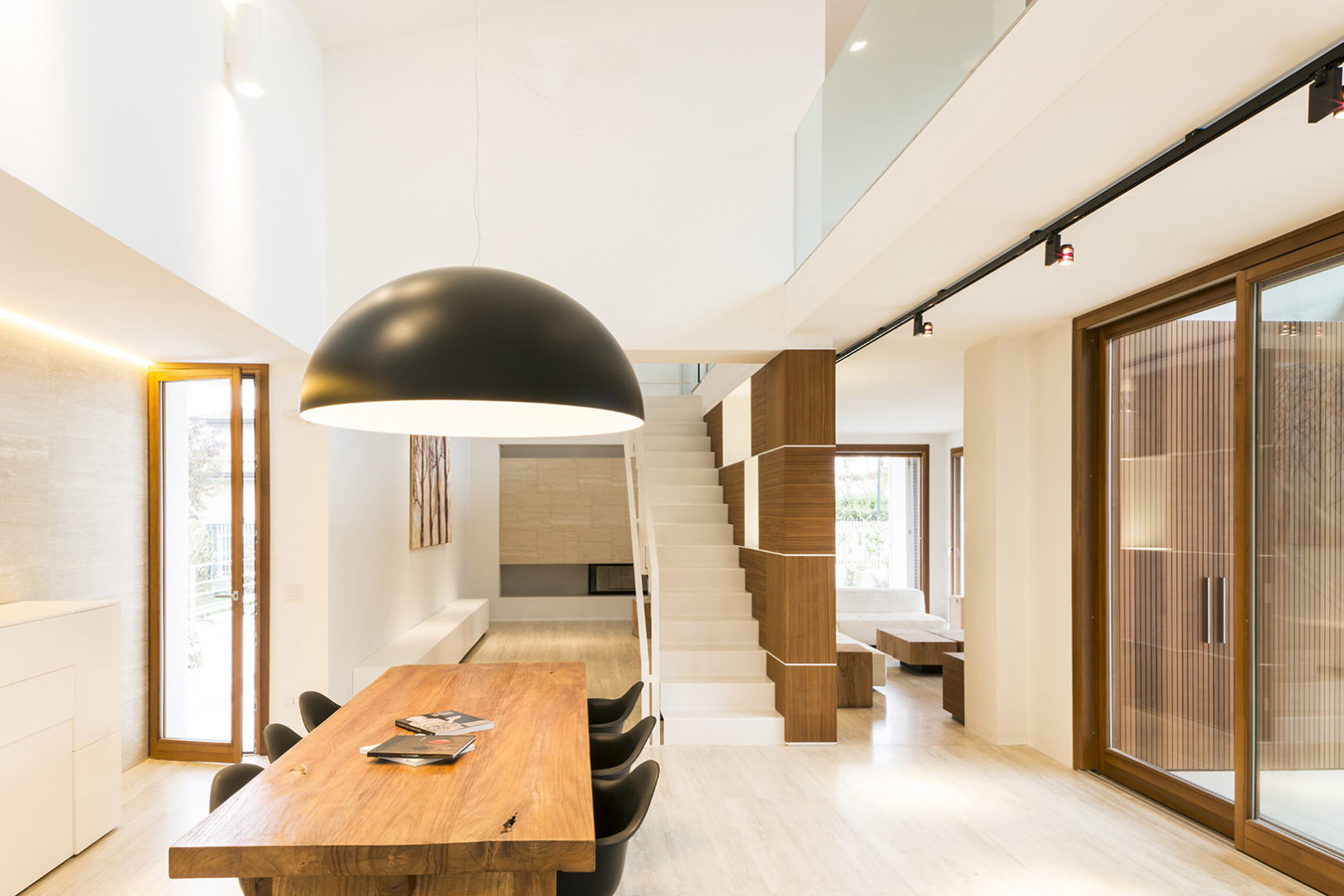 I due volumi sono unificati all’interno da vuoti a tutt’altezza, dalla preziosità degli arredi e dei dettagli.